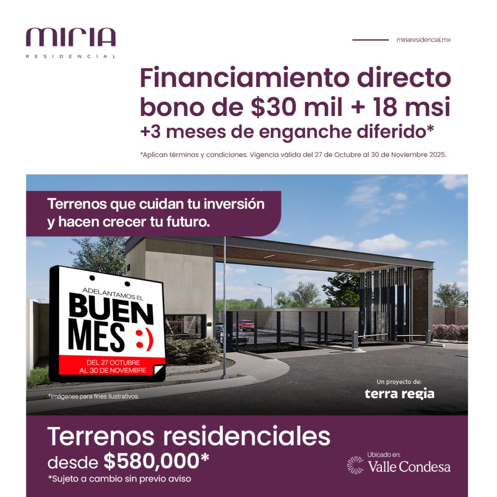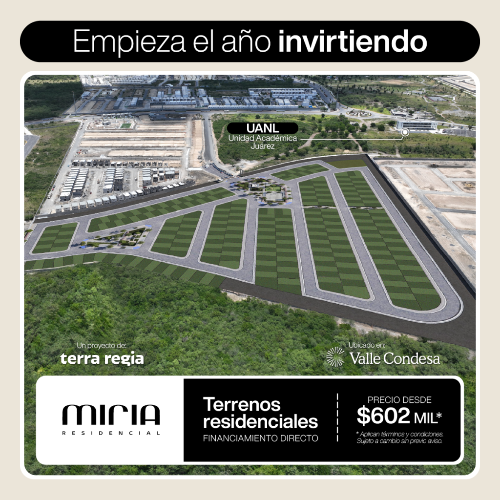 Miria Residencial está ubicado en Valle Condesa, un proyecto integrador de los municipios de Guadalupe, Juárez y Cadereyta.